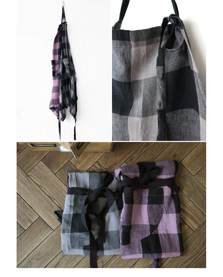 Z-639 clothオーバーダイリネンブロックチェックタブリエエプロン SOLD OUT