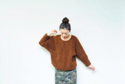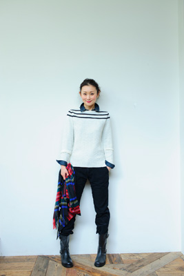 クロスのケーブル編みセーターに、