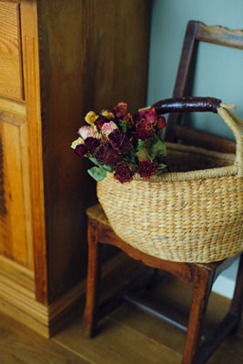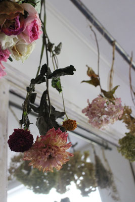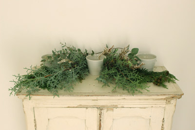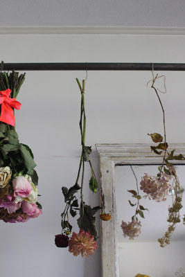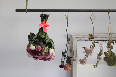 棚の上には、ユーカリやドライフラワーなど、