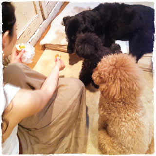 グレじいさんに買ってきたのに、おチビたちもわさわさ群がる。