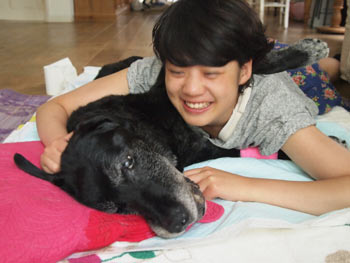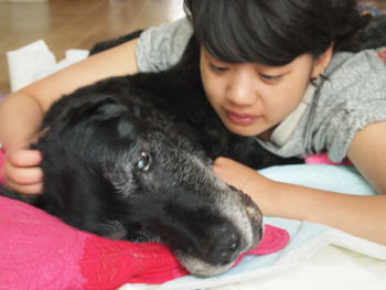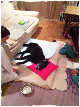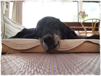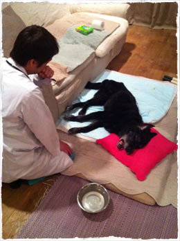 今日のグレちん、なんだか元気ないぞ? 大好物のササミも3口食べただけ。