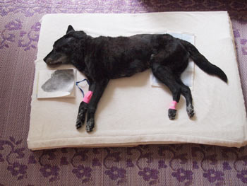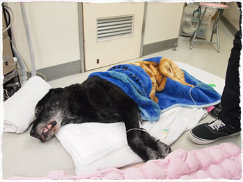 グレじいさん、唯一頼りの前脚を痛めて、今日はひとりで起きれません。。。