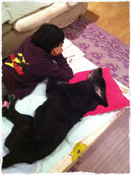 グレちんが夜中にヒーヒー鳴くので、 心配したお父さんは昨晩グレちんのそばで一緒に寝てあげることにしました。 が、朝を迎えてグレちんが鳴いても、お父さんはグースカグースカ♪何も気づいてない模様。。。